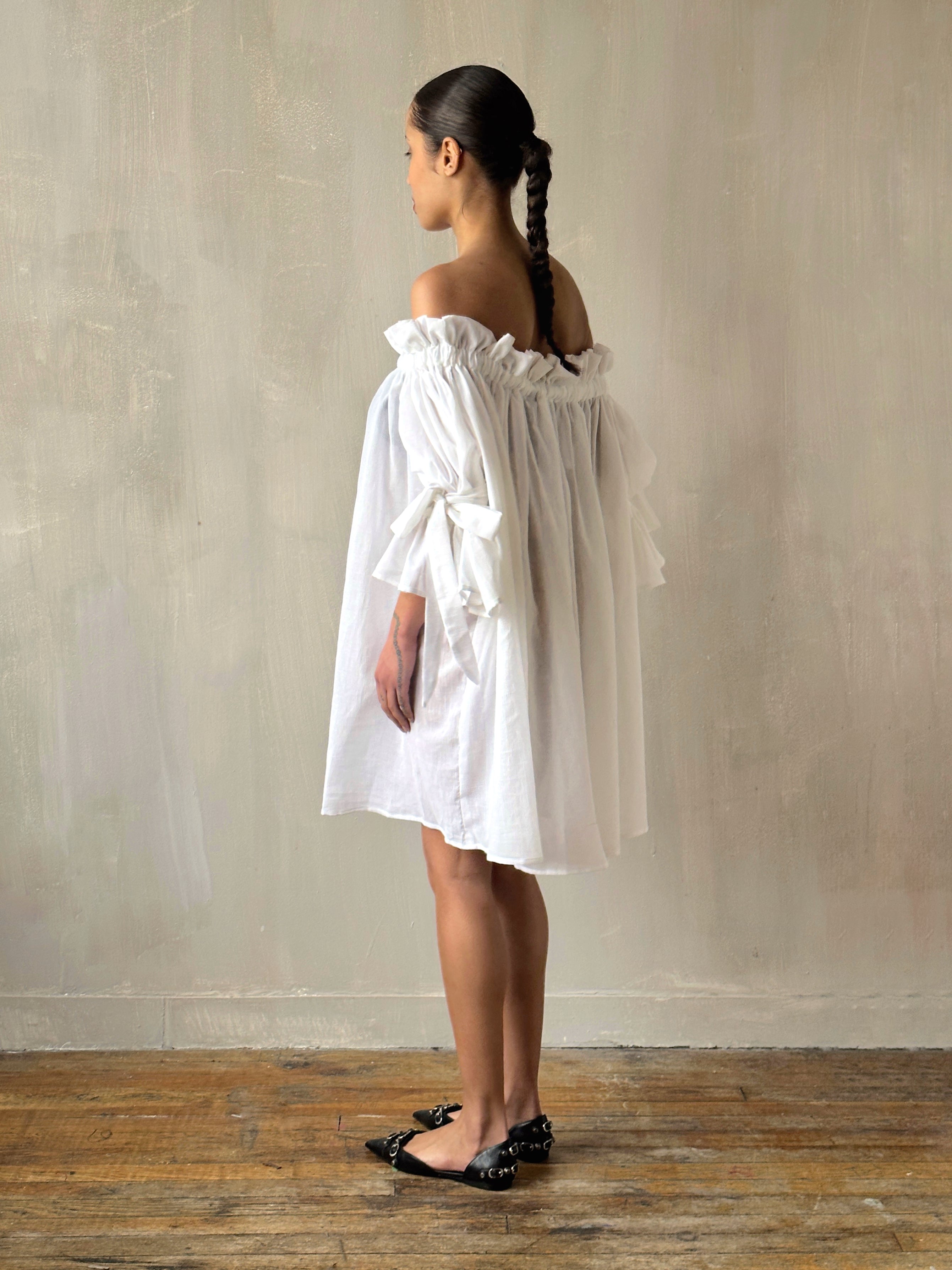 Paperbag Tunic in White Cotton Voile (Made-to-Order)