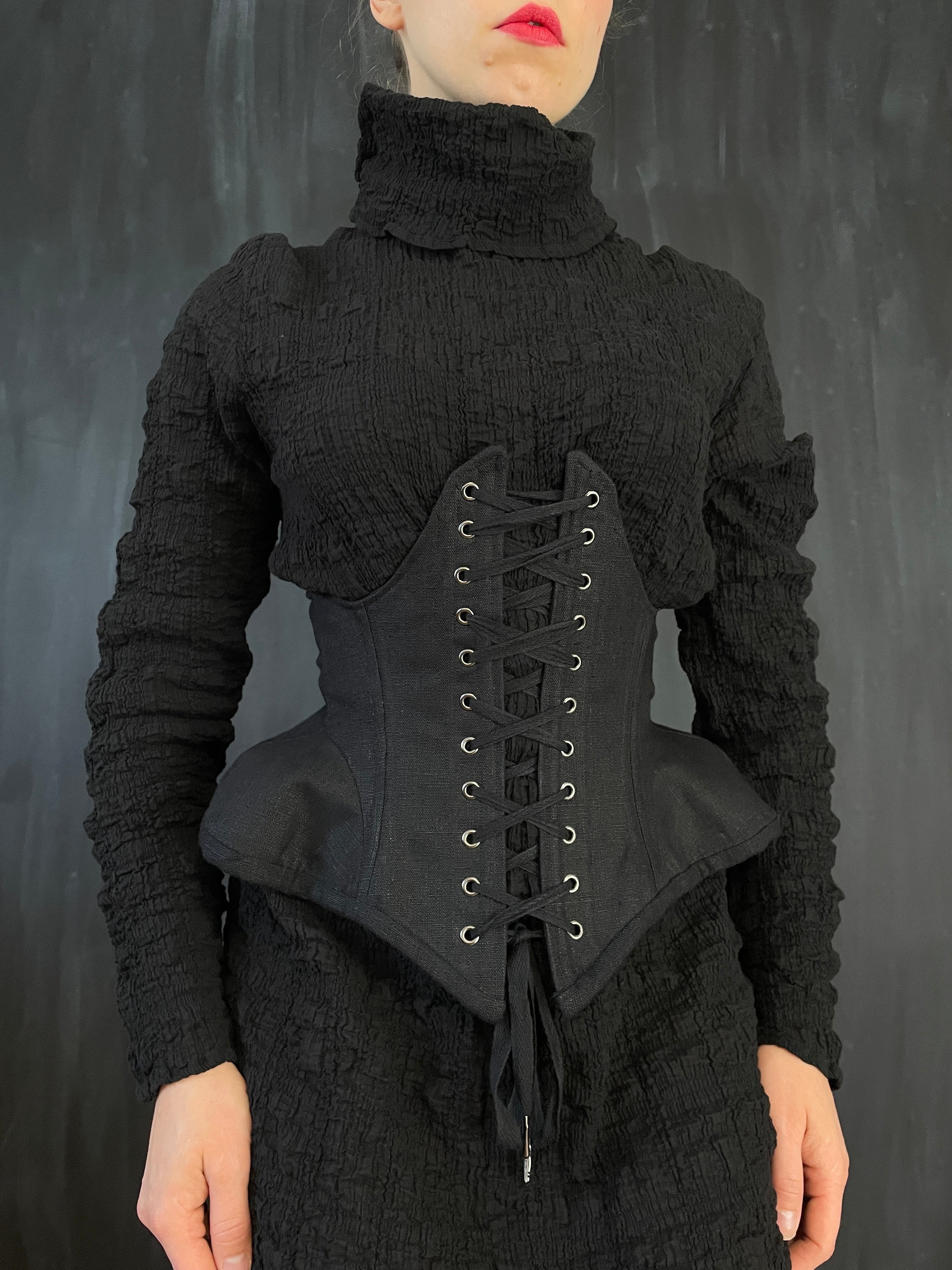 Underbust Pannier Corset in Black Linen (Limited Edition)